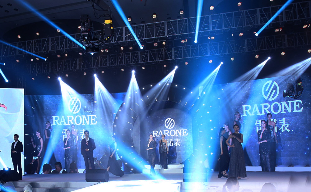 今年的雷諾表展館展臺以波浪形的表帶及表盤合成抽象的圓形表盤,并配以燈光,極具視覺沖擊力,白色的線條猶如鋼琴的琴鍵,流暢而優(yōu)美,環(huán)繞展臺四周,時間與優(yōu)雅的生活完美融合,并在入口處設置時光隧道,光影穿梭,引領全新的商務體驗和潮流。展館內(nèi)的流水幕墻,寓意著時光的流動完美融合其中,展示效果更為生動。