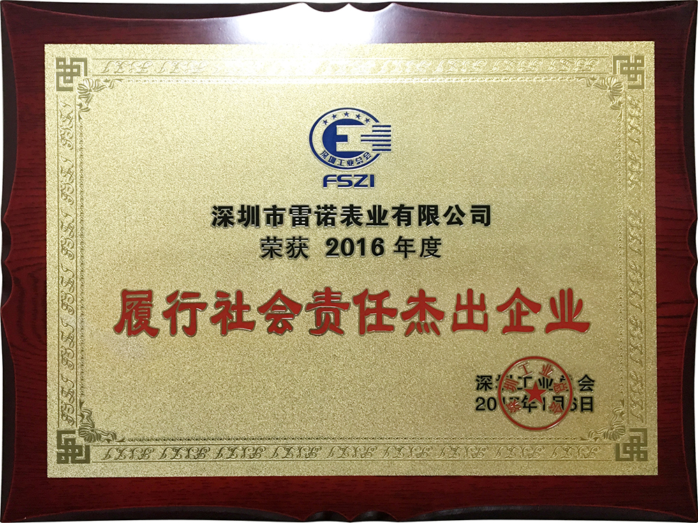 日前,深圳市雷諾表業有限公司在深圳市工業總會2016年度總會上榮獲:履行社會責任杰出企業、深圳工匠培育示范單位、自主創新標桿企業稱號,雷諾表業董事長詹西洲先生榮獲企業家卓越貢獻獎,雷諾表業兩位技師榮獲深圳百優工匠獎。