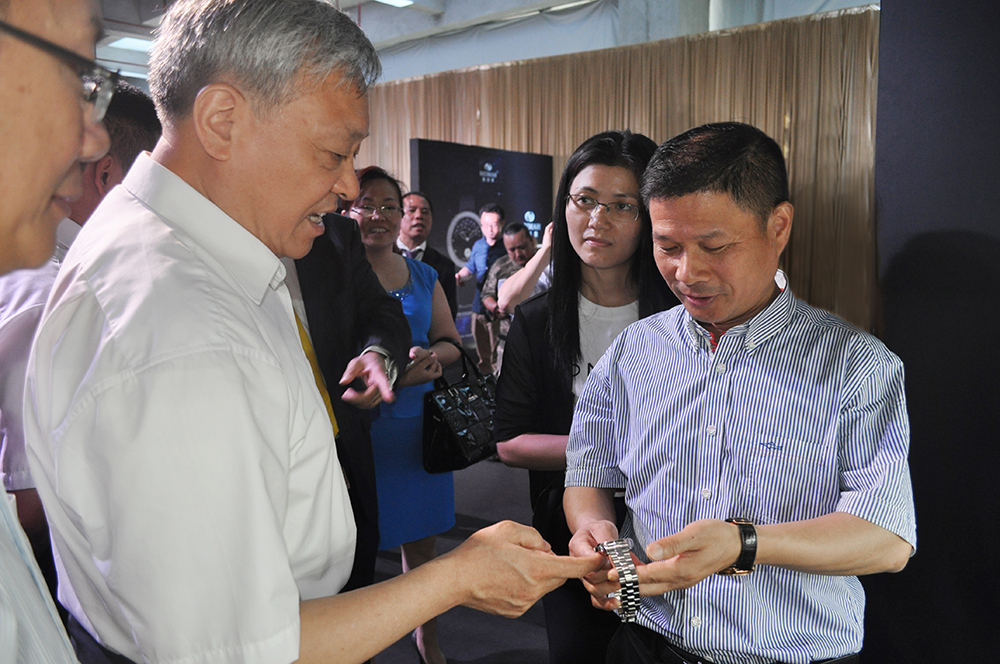 活動現(xiàn)場,深圳市相關(guān)領(lǐng)導及鐘表行業(yè)協(xié)會領(lǐng)導、各品牌高層一同為文博會鐘表分會場揭幕,并參觀鐘表展覽區(qū)。雷諾表作為商務手表品牌,攜騎士商務系列、博鰲··鼎智系列、夜色系列在6號展位亮相。政委領(lǐng)導參觀雷諾展區(qū)時,對雷諾表春秋系列贊譽有加,并鼓勵雷諾表挖掘更多中國傳統(tǒng)文化精髓,將鐘表技術(shù)與中國傳統(tǒng)文化相結(jié)合,引領(lǐng)鐘表新潮流。